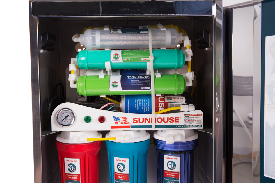 SUNHOUSE SHR88310K được trang bị van điện từ, đồng hồ hiển thị áp lực và hệ thống tự động kiểm soát hoạt động hiện đại cùng với công nghệ diệt khuẩn tiên tiến hàng đầu NANO SILVER và màng R.O Filmtec sản xuất tại Mỹ.