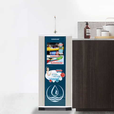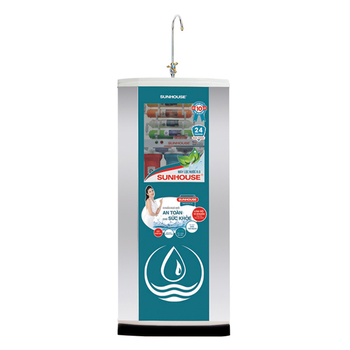 Máy lọc nước R.O 10 lõi SUNHOUSE SHR88310K có kiểu dáng sang trọng, vỏ tủ làm bằng inox dày dặn, không nhiễm từ, không bị han gỉ nên rất sáng bóng và dễ dàng vệ sinh. Mặt tủ làm bằng kính cường lực cao cấp, bền đẹp.