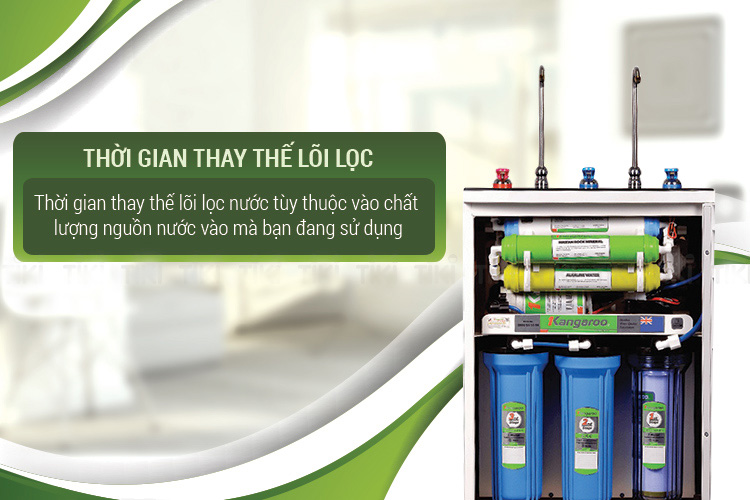 Thời gian thay thế lõi lọc nước tùy thuộc vào chất lượng nguồn nước vào mà bạn đang sử dụng, tiêu chuẩn thời gian bên dưới được đo với nguồn nước máy (nước thuỷ cục):