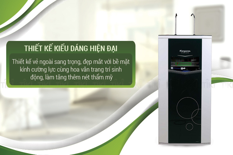 Máy Lọc Nước Kangaroo KG10A3 VTU có thiết kế vẻ ngoài sang trọng, đẹp mắt với bề mặt kính cường lực cùng hoa văn trang trí sinh động, làm tăng thêm nét thẩm mỹ cũng như làm tiện nghi hơn cho không gian nhà bạn. Máy có dung tích lớn và công suất lọc từ 10-15 lít nước/giờ đảm bảo đáp ứng tốt nhu cầu sử dụng nước của hầu hết các gia đình.