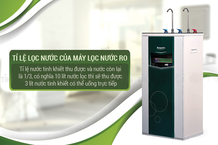 - Tỉ lệ nước tinh khiết thu được và nước còn lại là 1/3, có nghĩa 10 lít nước lọc thì sẽ thu được 3 lít nước tinh khiết có thể uống trực tiếp và 7 lít nước còn lại.