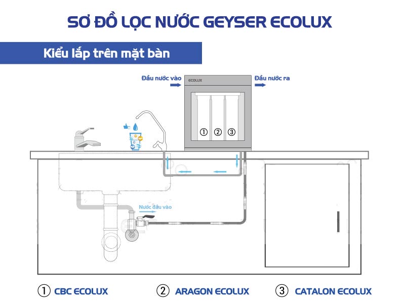 - Geyser Ecolux A mang lại nguồn nước không những bảo đảm chất lượng mà nước sau khi lọc vẫn giữ lại khoáng chất cần thiết cho cơ thể, không dùng bình chứa để tránh tái nhiễm khuẩn.