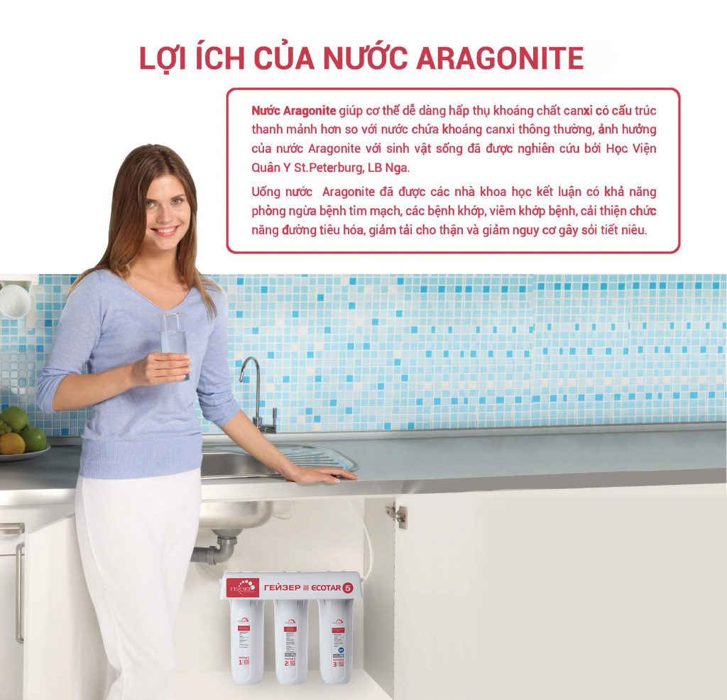 – Tăng cường loại bỏ các tạp chất ô nhiễm mà còn giữ lại nguồn nước giàu canxi tự nhiên thể, Aragonite giúp cơ thể hấp thụ dễ hơn, bảo vệ và tăng cường sức khỏe cho gia đình.