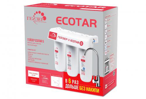 Ecotar 5 sử dụng vật liệu CBC 5 và vật liệu Aragon 5 của Geyser LB Nga tác dụng loại bỏ các rong rêu, tảo, nấm, gỉ sét từ đường ống; loại bỏ kim loại nặng, chất độc hại, chất hóa học, thuốc trừ sâu, chất phóng xạ tồn dư trong nước; loại bỏ màu, mùi, … giúp làm sạch nước hiệu quả.