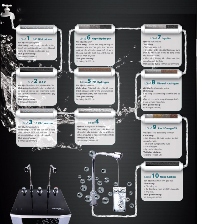 Máy Lọc Nước Kangaroo KG100HK Hydrogen 2 Vòi Nóng Lạnh 10 Cấp Lọc