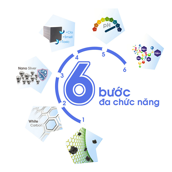 Sử dụng công nghệ lọc Nano - Nano Filtration cho phép nước từ ngoài vào nhờ áp lực dòng chảy của nước, công nghệ lọc Nano là hoàn toàn không có nước thải nhưng vẫn lọc sạch hoàn toàn các vi khuẩn có trong nước, đảm bảo nước sau khi lọc uống trực tiếp không cần đun sôi và giữ nguyên thành phần vi khoáng, đáp ứng tiêu chuẩn nước uống tại Hàn Quốc và Bộ Y tế Việt Nam.