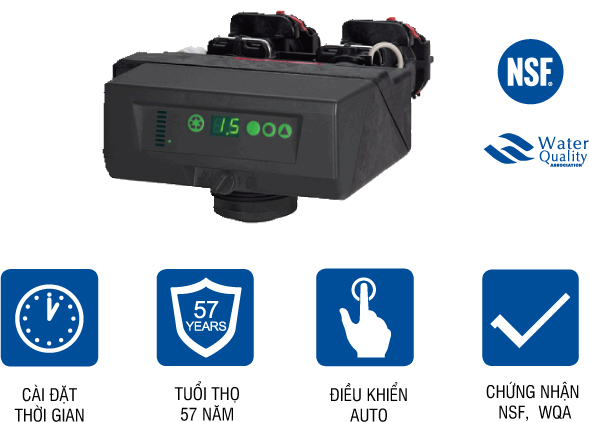 - Thân van và các linh kiện bên trong đều được chứng nhận bởi NSF, đạt tiêu chuẩn ORD 0902, NSF/ANSI 44, CE, ACS