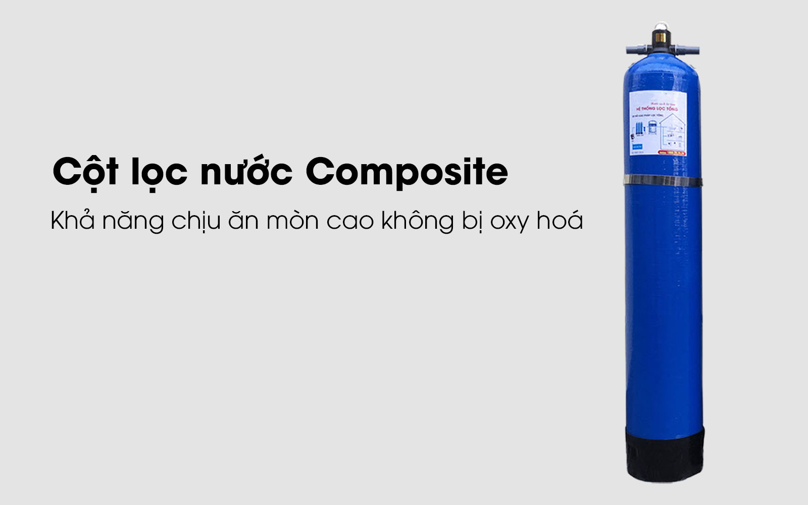 Cột lọc Composite có ưu điểm là độ bền cao, chống ăn mòn tốt có thể xử lý được các nguồn nước bị nhiễm mặn, phèn,…chịu được áp lực của nước, cách điện, cách nhiệt tốt, trọng lượng nhẹ dễ dàng di chuyển và lắp đặt. Bề mặt nhẵn dễ vệ sinh.