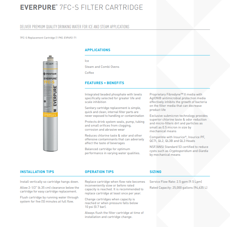Lõi lọc nước Everpure 7FC-S EV9692-71 là lựa chọn lý tưởng cho các ứng dụng trong lĩnh vực dịch vụ thực phẩm như máy làm đá, máy pha cà phê, lò hấp kết hợp và nhiều thiết bị khác. Sản phẩm này giúp cải thiện chất lượng nước, bảo vệ thiết bị và nâng cao trải nghiệm khách hàng.