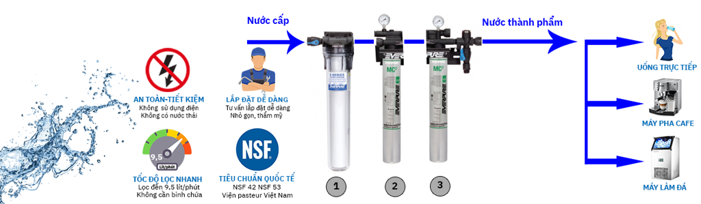 - Thay Cartridge vệ sinh, đơn giản, nhanh chóng. Lõi lọc phần không bao giờ được tiếp xúc trực tiếp.