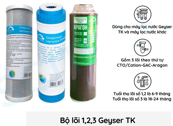 Theo thời gian máy lọc nước DHP-TK6, DHP-TK7, GS-TK7, GS-TK8 đã được hàng chục ngàn gia đình sử dụng và tin dùng trong thời gian qua, máy lọc nước nano Geyser TK 9 nhiều cấp lọc tân tiến nhất nhưng giá cả hợp lý nhất so với nhưng dòng máy lọc nước ít cấp lọc hơn mới xuất hiện trên thị trường được Hãng GEIZER sản xuất cho nguồn nước máy sạch và không mùi clo, không có cặn bẩn như ở Nga và thị trường Châu Âu